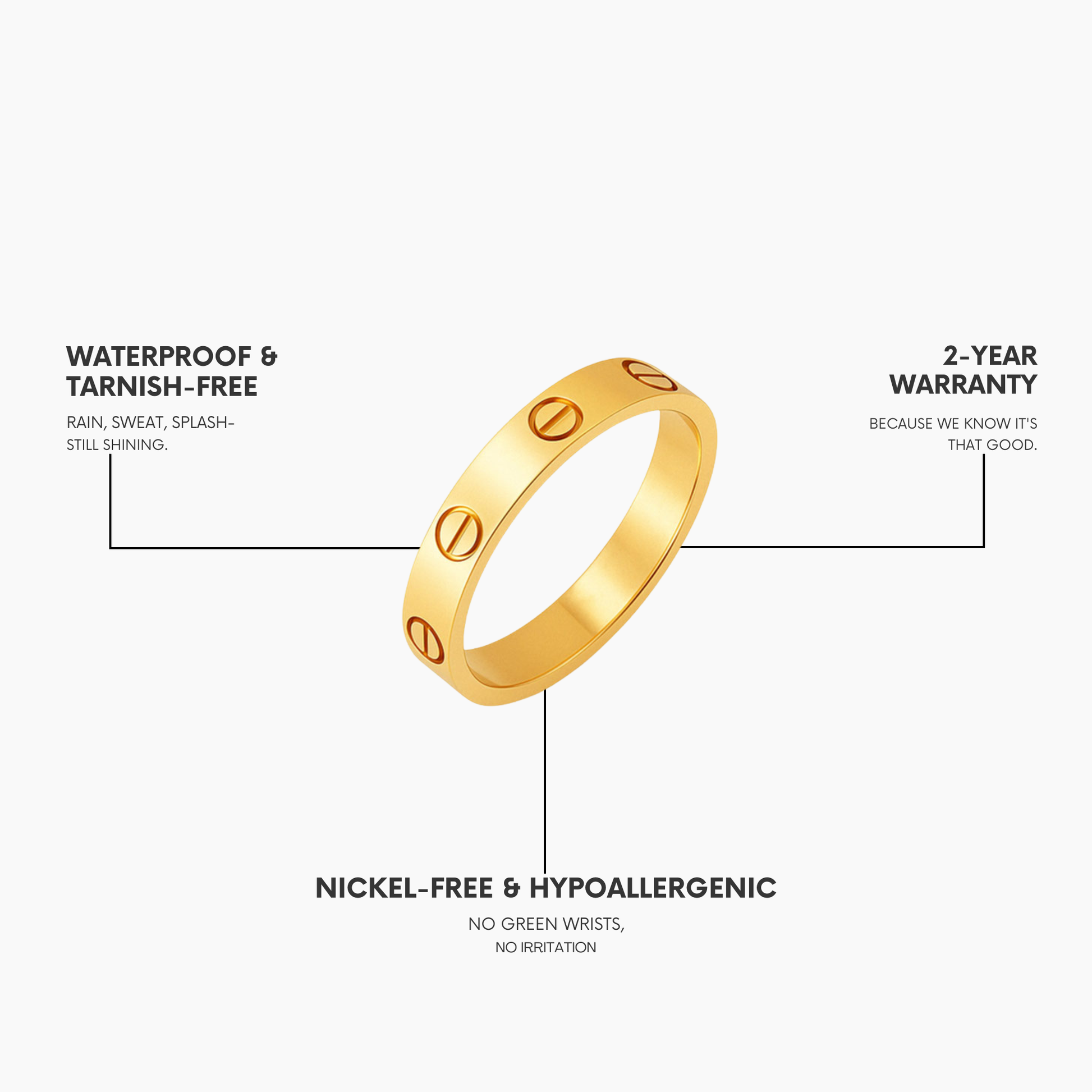 18K Gold plating on surgical steel. Engineered to stay brilliant, always.