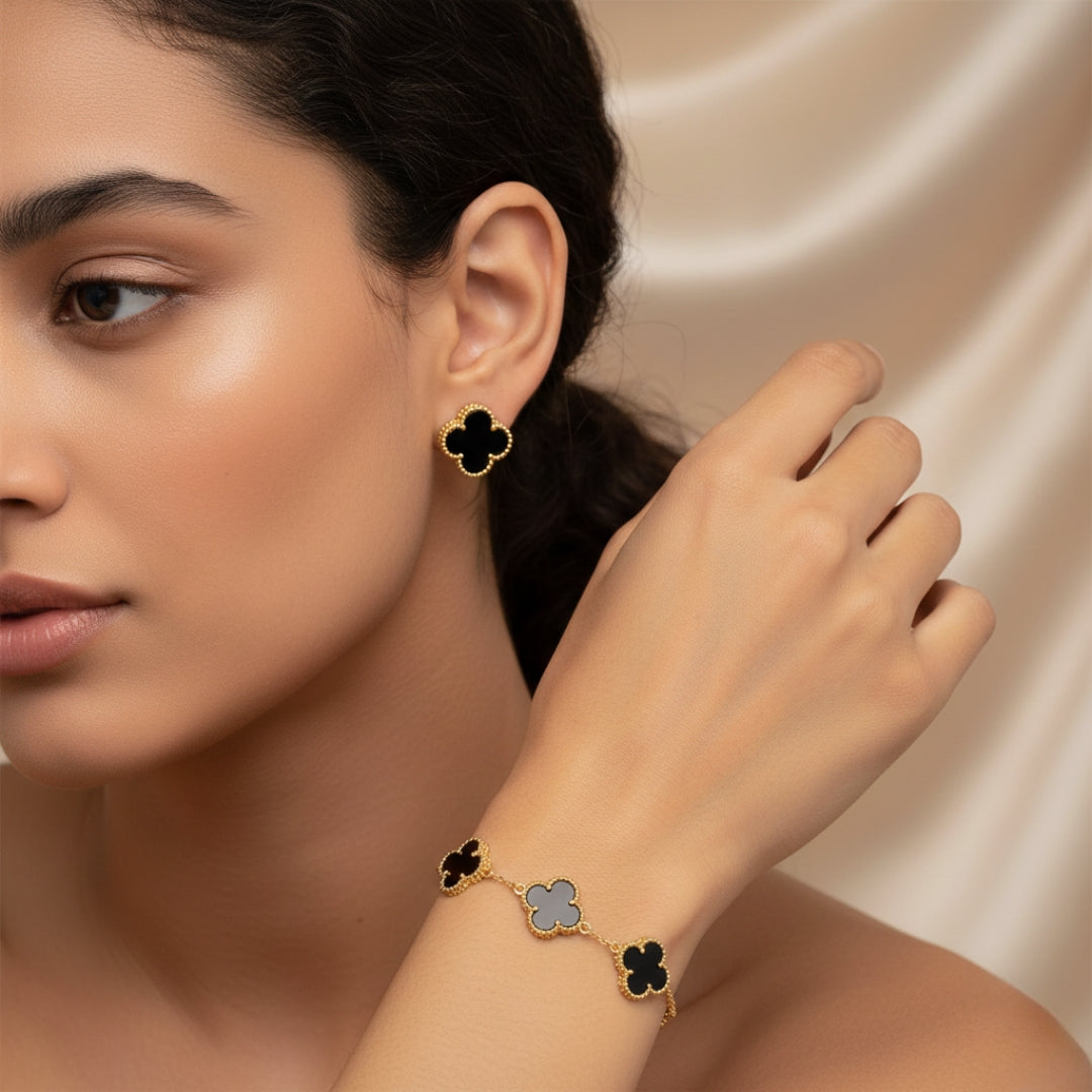 Elevate your style with the Clover Black Set — a sleek duo designed to bring modern sophistication and timeless charm to your look. Perfect for pairing together or wearing individually, this set adds effortless elegance to any occasion.