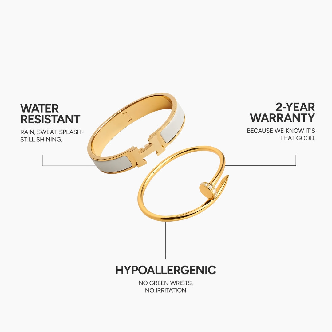 18K Gold plating on surgical steel. Engineered to stay brilliant, always.