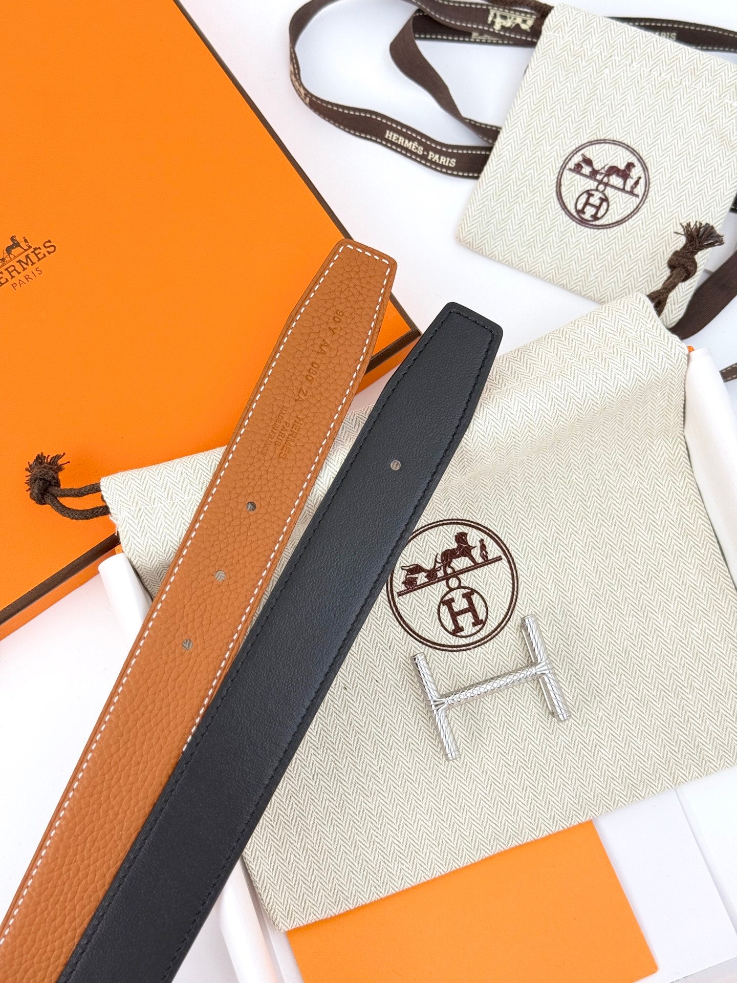 HELENE HISSEO REVERSIBLE LEATHER BELT — BROWN (SILVER HARDWARE, 32MM)