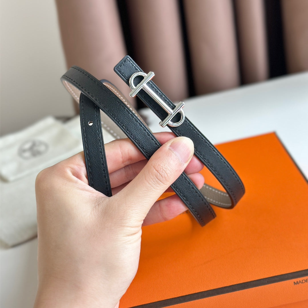 HELENE GAMMA REVERSIBLE LEATHER BELT — KHAKI BROWN & BLACK (SILVER HARDWARE)