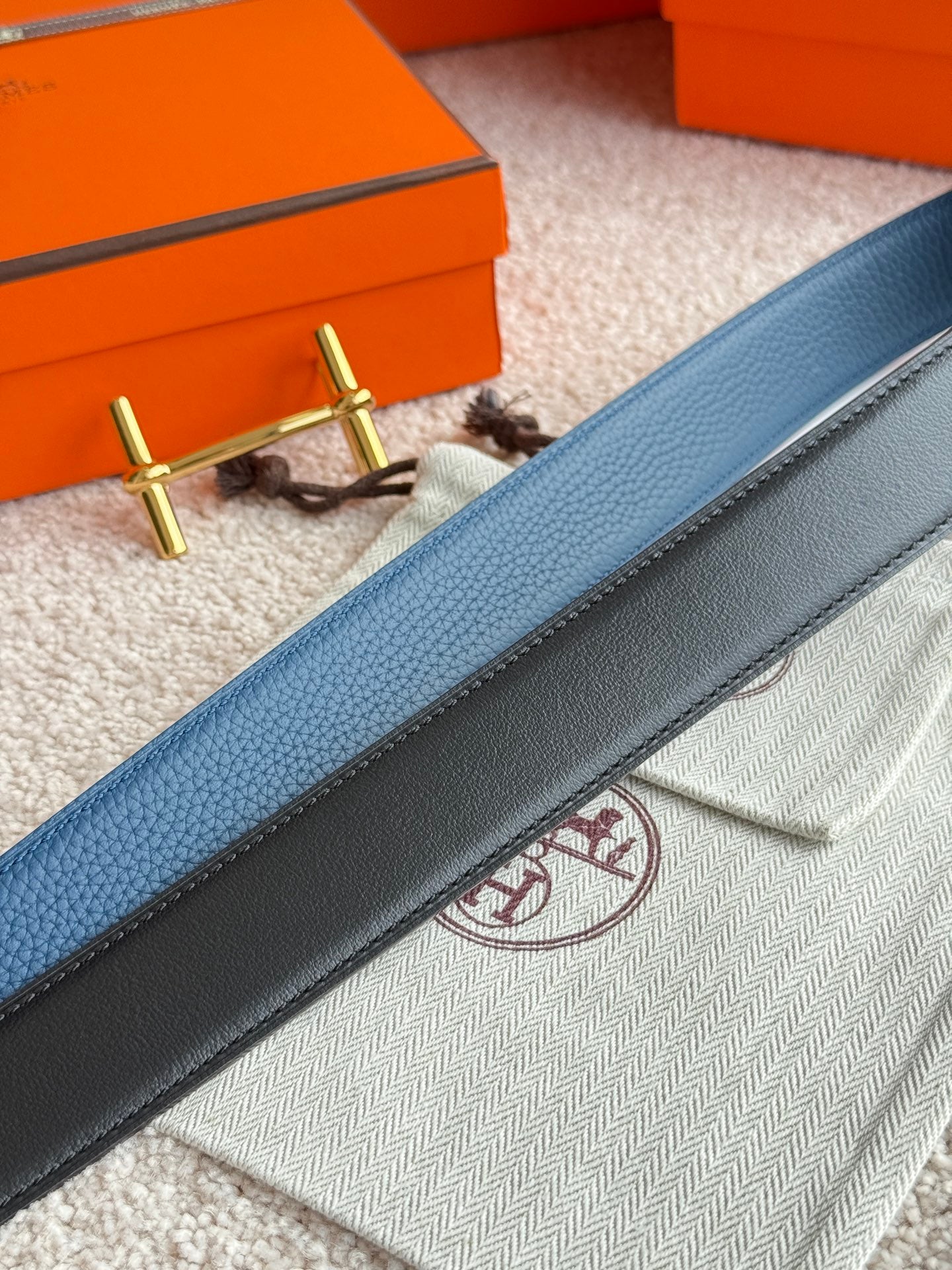 Hardware: Gold-toned H d’Ancre buckle in permabrass plated metal