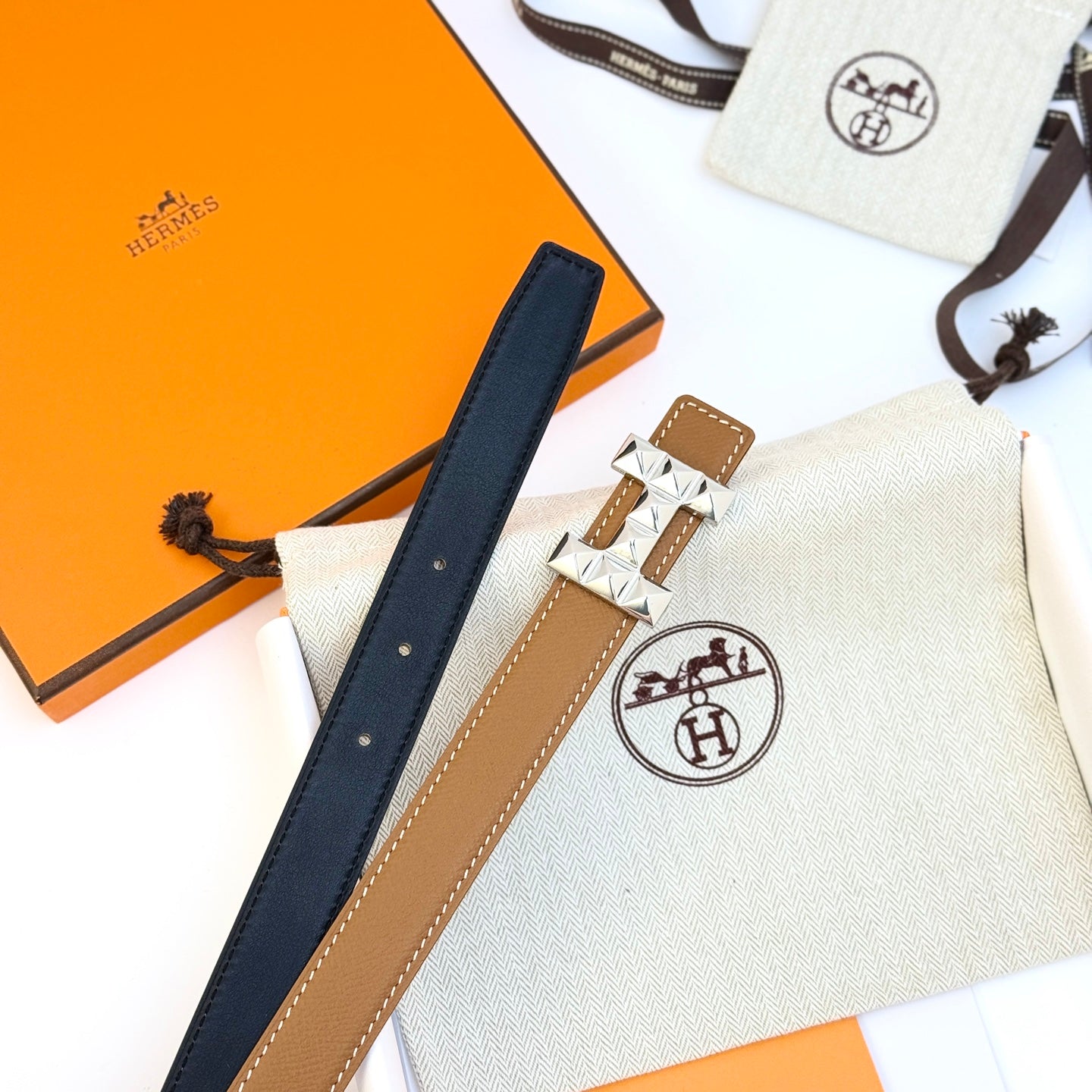 HELENE INFINI REVERSIBLE LEATHER BELT — BROWN EPSOM (SILVER HARDWARE, 24MM)