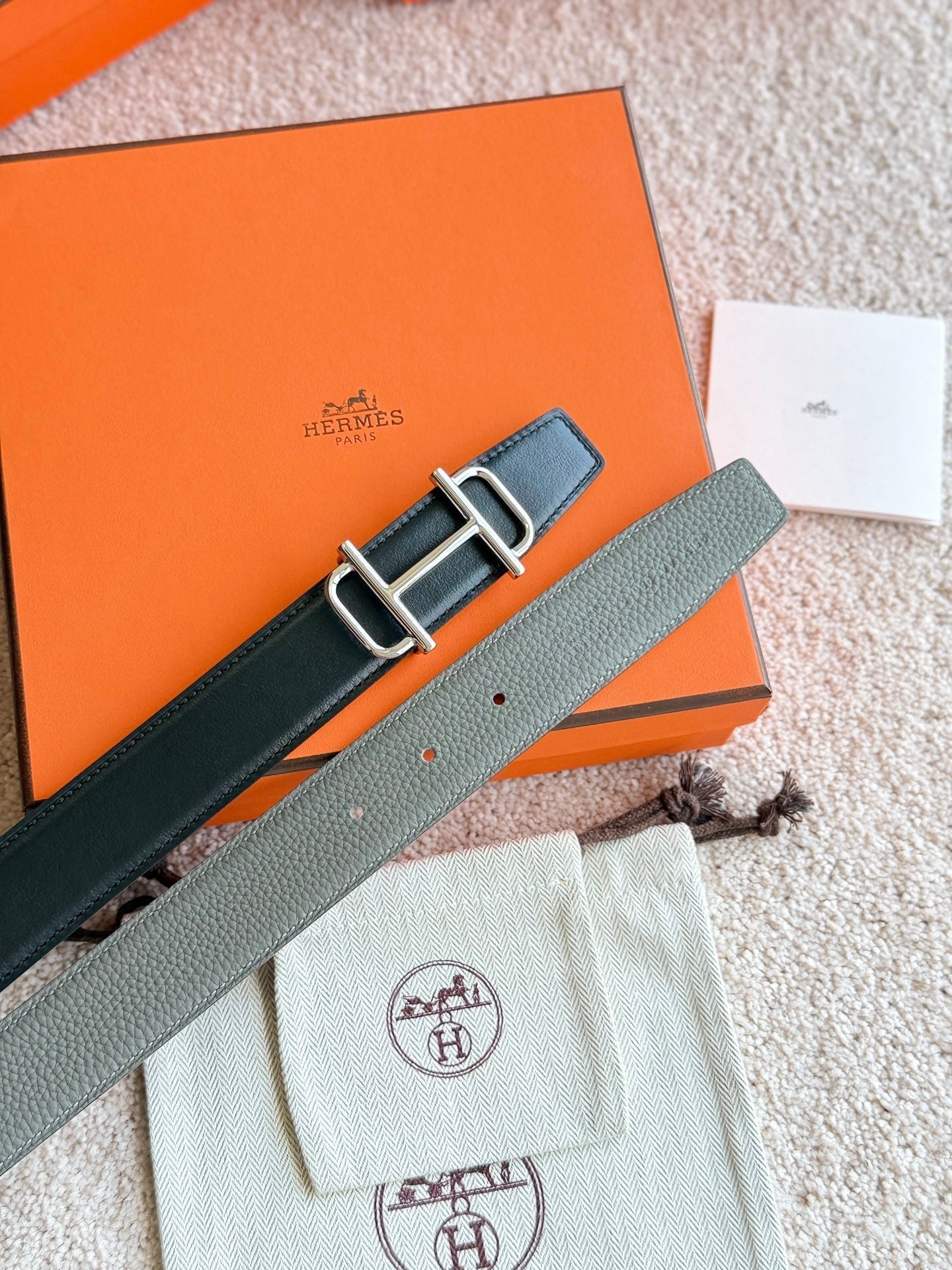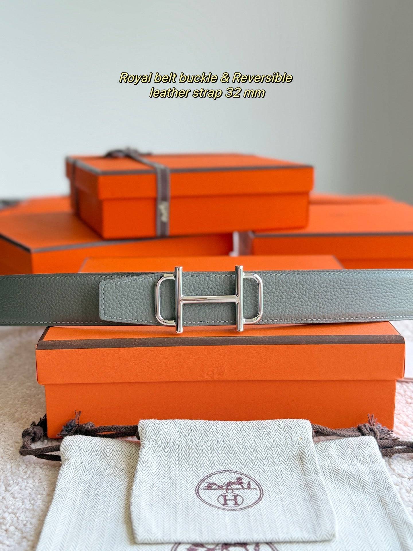 HELENE ROYAL LEATHER BELT — GRAY & BROWN (SILVER HARDWARE, 32MM)