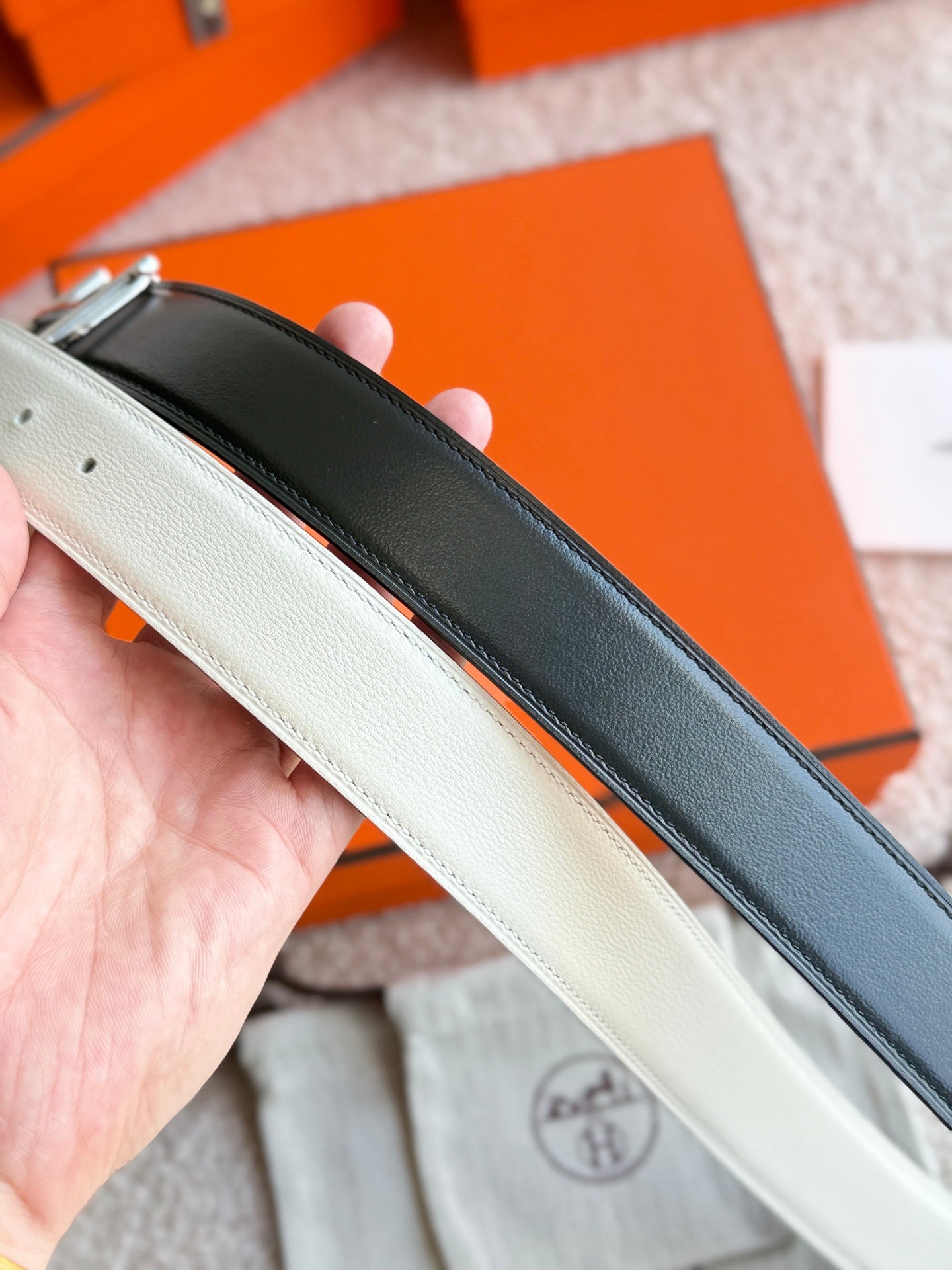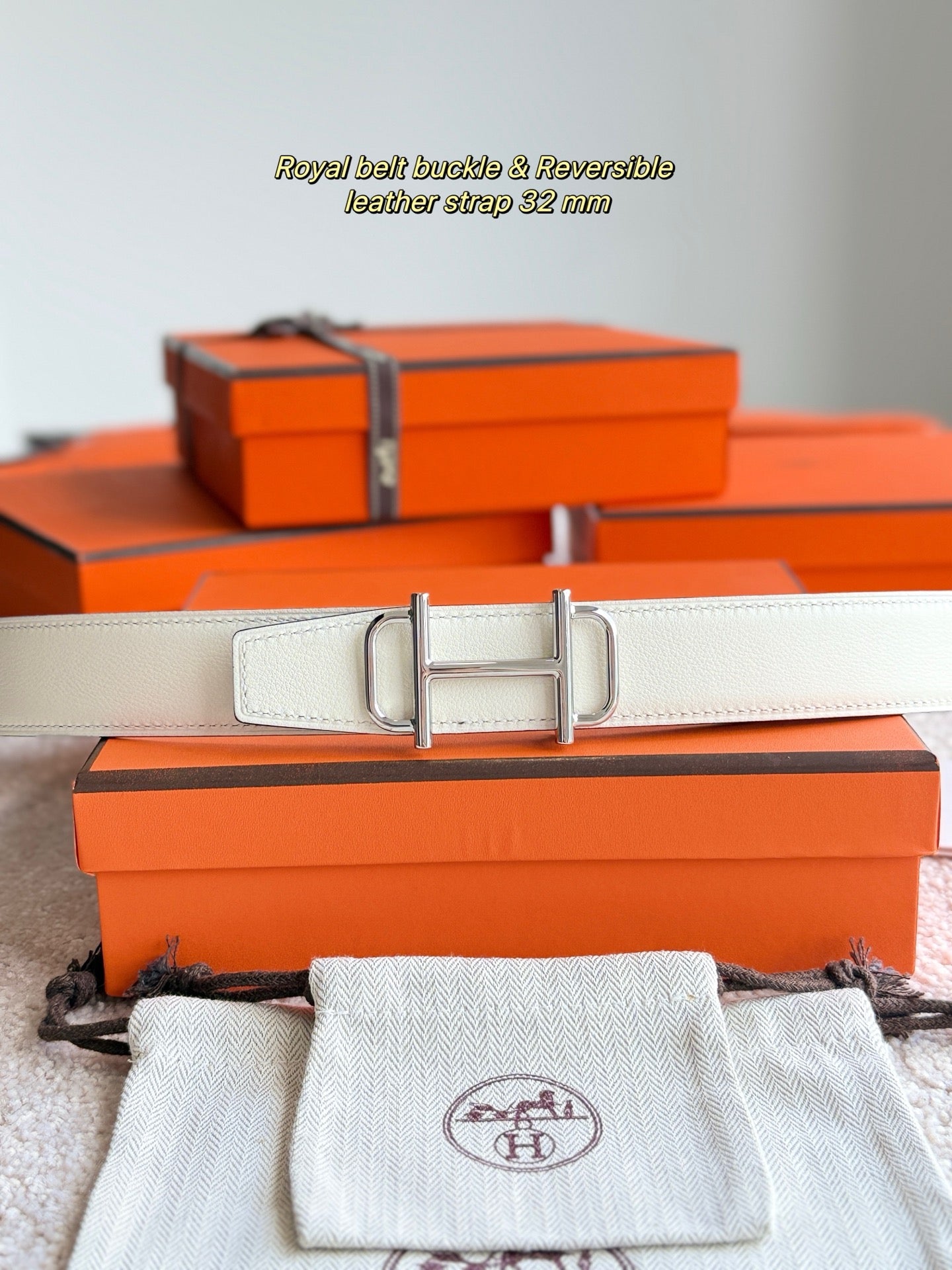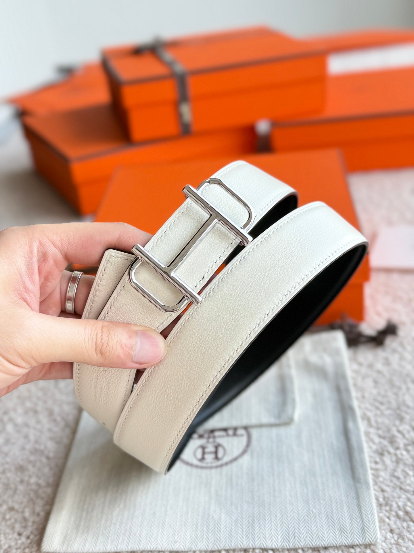 HELENE ROYAL LEATHER BELT — IVORY (SILVER HARDWARE, 32MM)