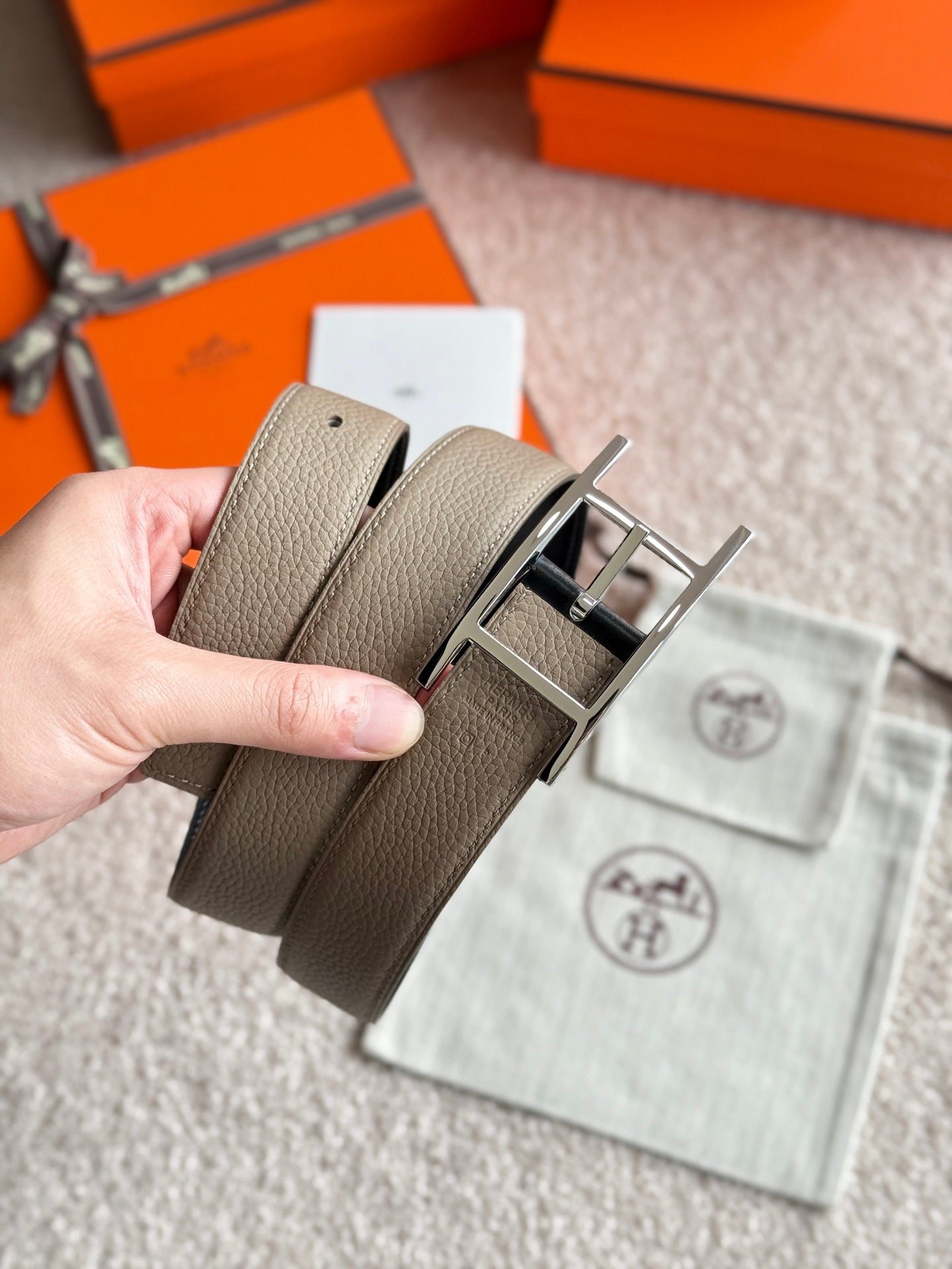 HELENE QUENTIN REVERSIBLE LEATHER BELT — BLACK & BEIGE (SILVER HARDWARE, 32MM)