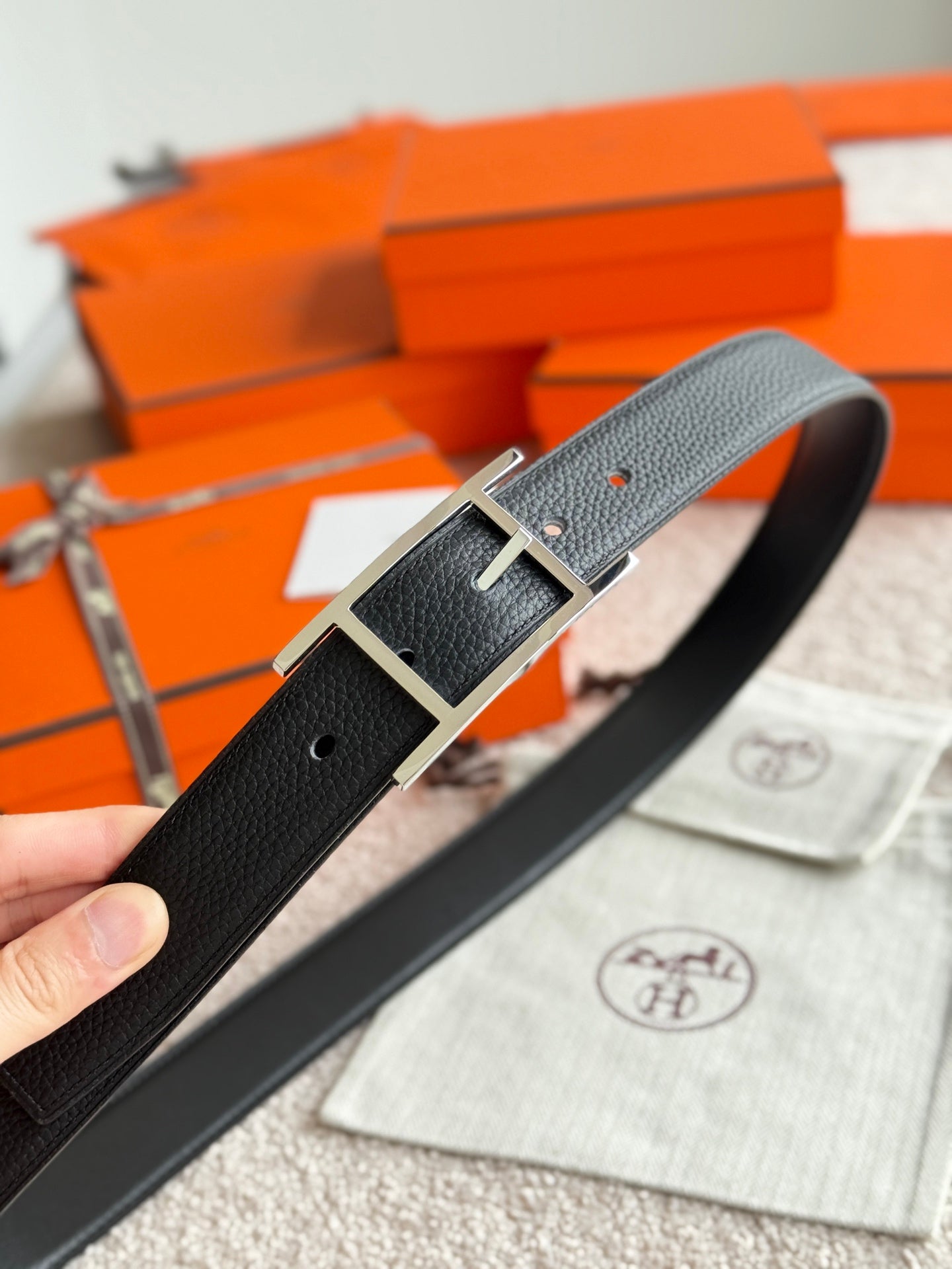 HELENE QUENTIN LEATHER BELT — BLACK (SILVER HARDWARE, 32MM)