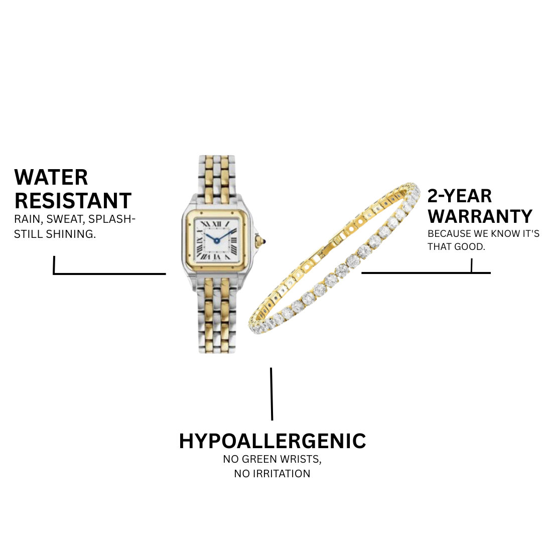 18K Gold plating on surgical steel. Engineered to stay brilliant, always.