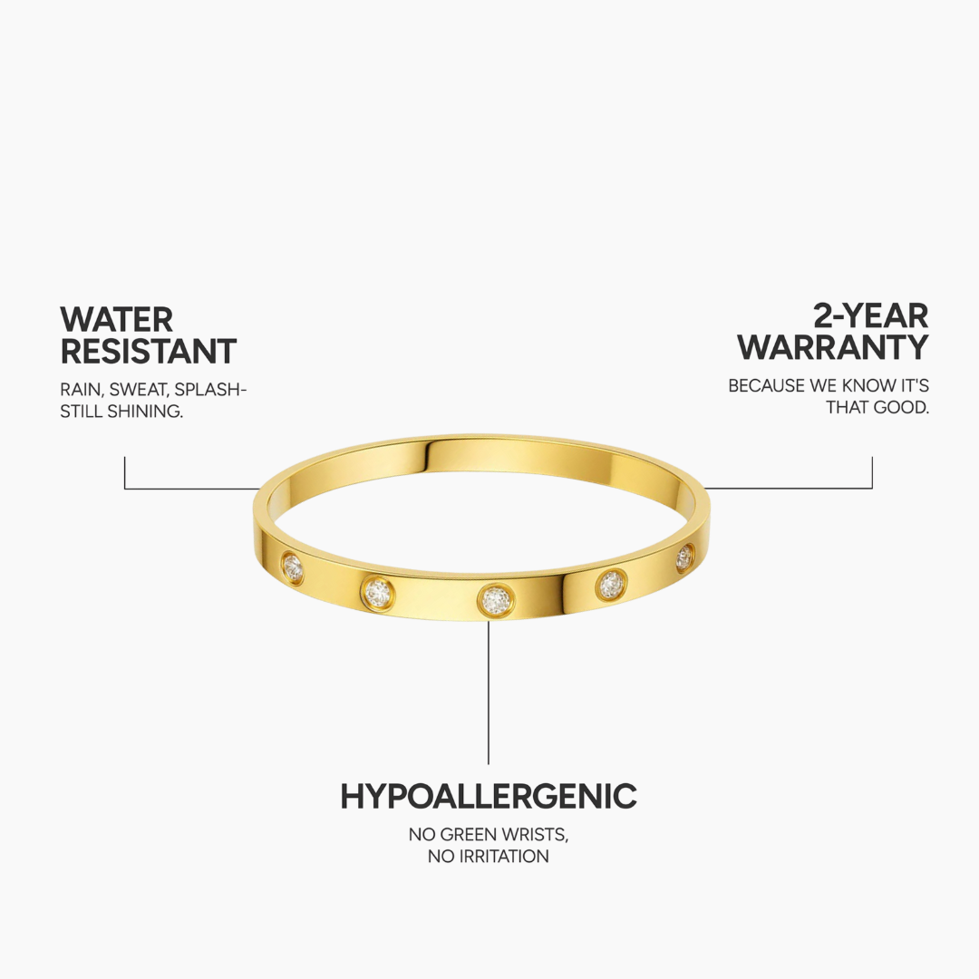 18K Gold plating on surgical steel. Engineered to stay brilliant, always.