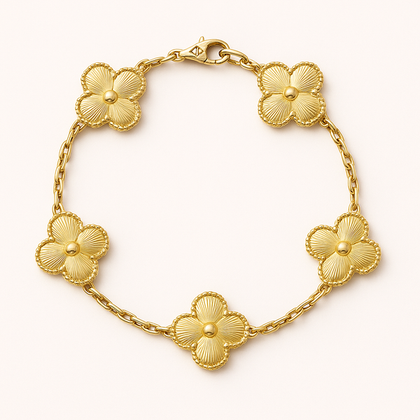 - Trinity & Clover Bracelet: A delicate and adjustable bracelet (16+5 cm) with charming details, available in gold or silver.