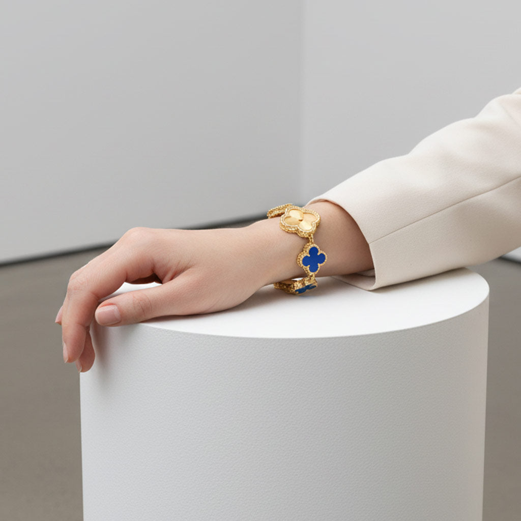 Every detail reflects artistry and intention, from its polished finish to the way light dances across its clover-shaped design. Perfect for both statement moments and everyday elegance, this piece embodies true luxury reimagined for the modern muse.