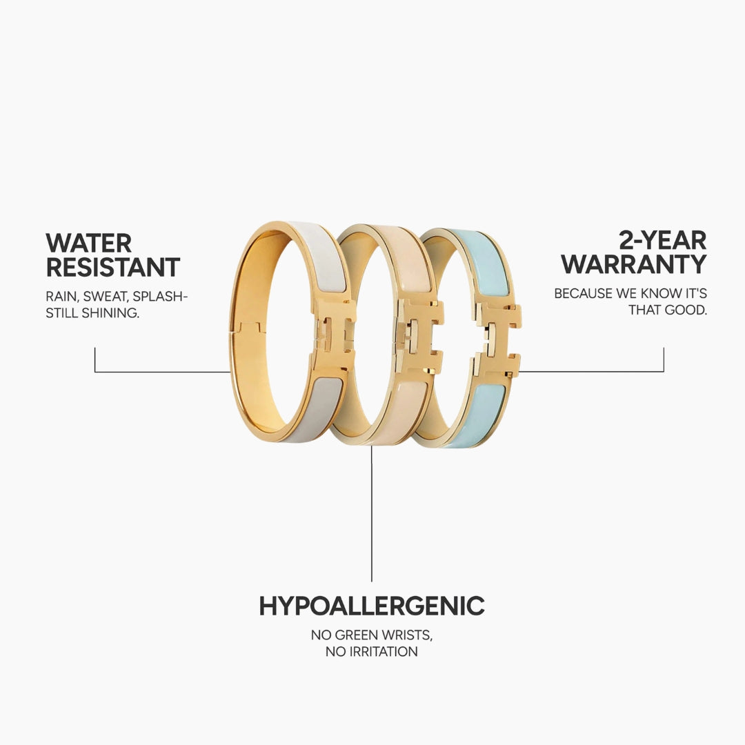 18K Gold plating on surgical steel. Engineered to stay brilliant, always.